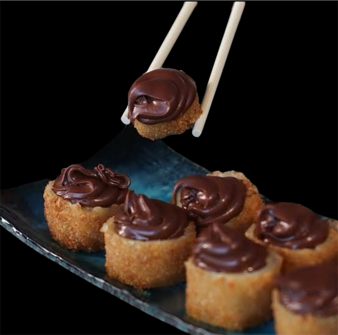 Roll hot com recheio de chocolate e brigadeiro, empanado na farinha panko.