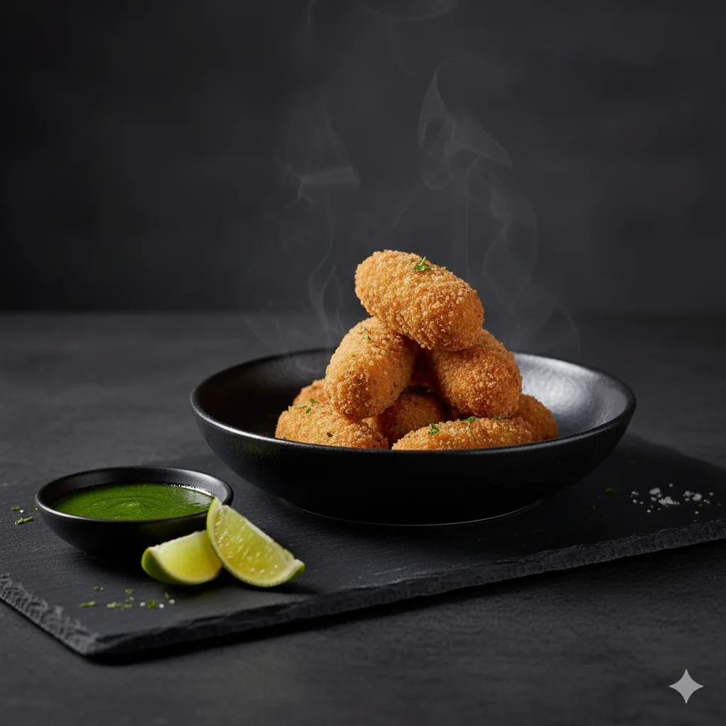 8 Unidades de Camarão empanado na farinha panko e cebolinha.