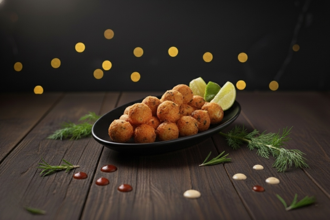 6 Unidades de bolinhas de salmão com cream cheese e cebolinha empanado e frito.