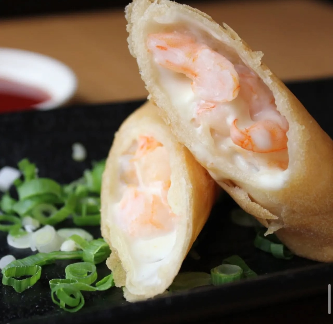 Massa de harumaki, cream cheese, cebolinha e camarão fresco. (1unid)